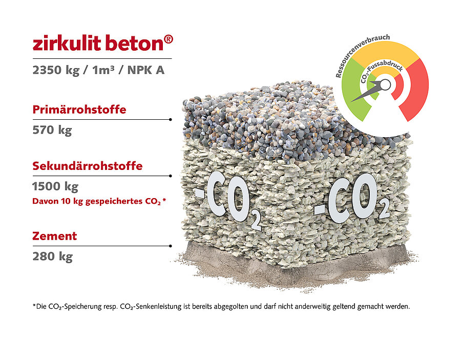 Zusammen mit verschiedenen Partnern, unter anderem auch einem Spin-Off der ETH Zürich, haben wir einen Beton entwickelt, der aus über 50 % Recyclinggesteinskörnung besteht und gleichzeitig CO₂ speichert. Das hat zirkulit beton® zum ersten zirkulären Beton der Schweiz gemacht.